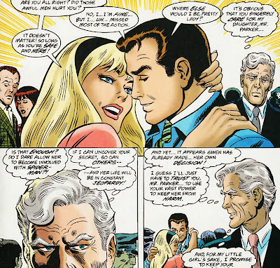 Mais uma história incrível narrada em flashback, nos primeiros dias de namoro de Peter e Gwen. Os pombinhos decidem oficializar seu relacionamento e marcam um encontro com o pai da moça, o Capitão Stacy, no Grão de Café - o point da turma da Universidade Empire State. O sobrinho de Tia May está temeroso pelo encontro, pois sabe que o policial aposentado investiga a carreira do Aranha, podendo descobrir a qualquer momento o seu segredo. Paralelo a isso, a rivalidade crescente entre Norman Osborn e Kraven acaba justamente nessa lanchonete, quando o caçador enfrenta alguns capangas do empresário. Só que um dos facínoras conhece Stacy de outros carnavais e decide matá-lo. Obviamente o Aranha intercede e, após grande tumulto, os bandidos são capturados e Kraven foge. Essa trama, narrada e desenhada com o frescor dos bons e velhos tempos, serviu principalmente para esclarecer, como e quando, o Capitão Stacy concluiu que seu quase futuro genro era o Homem-Aranha.